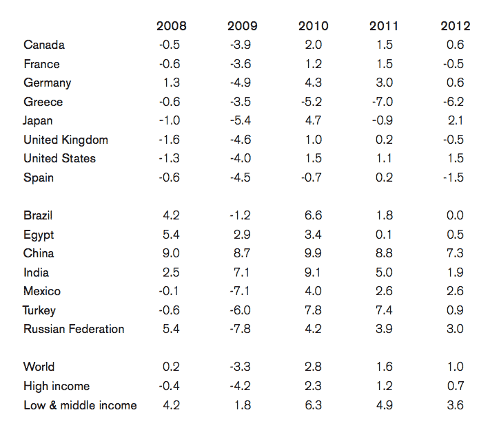 Table 1: GDP per capita percentage growth rates for selected countries, 2008–2012