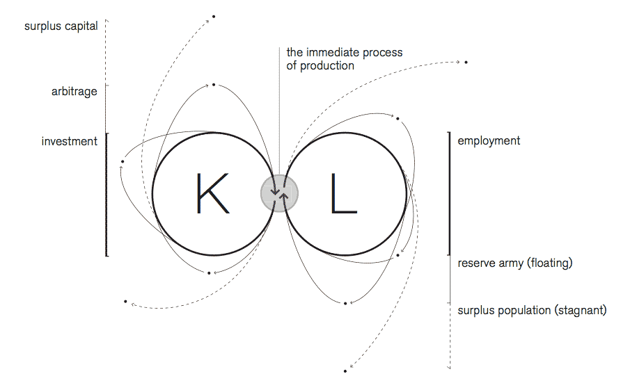 Figure 1: Surplus capital and surplus population as disintegrating circuits of capital and labour