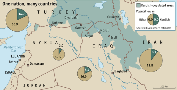 Kurdish protest takes place in an area now largely urbanized. The rural landscape with which the Kurds were closely associated, both in their daily reality and in much Orientalist imagination, has virtually disappeared [...]. in Iraqi Kurdistan, where Kurdish villages were destroyed en masse during the 1980s by the regime of Saddam Hussein, three quarters of the population live in the three largest cities, Erbil — the capital — Dohul and Sulaymaniyah. [...] In Syria, the core of Kurdish politics has always pulsed in the city and today more than ever it is the intelligentsia and the youth that occupy the stage. Equally in Iran, even if the power has never applied a policy of deliberate destruction of the Kurdish countryside, the demographic and political weight of rural areas has decreased to the benefit of a dozen cities, which are among the least developed in economic terms but are characterized by a great vitality. While most Kurdish cities in Iran have between 100,000 and 150,000 inhabitants, Urmia approaches 600,000. We observe the same dynamic in Turkey, where the tribal phenomenon was so palpable in past Kurdish resistance. [...] Another element, infinitely more noticeable than in the past, regards the weight of internal diasporas in each of these countries. If Baghdad has ceased, for obvious reasons, to be a place of Kurdish concentration, other capitals or major cities extend the Kurdish space well beyond historical Kurdistan: Istanbul — home to millions of Kurds — and a half dozen other Turkish cities, Aleppo and Damascus, where there are about 600,000, or again Tehran. [...] Finally, if the presence of more than a million Kurds in Europe is nothing new, this other diaspora, quite distinct from that which existed in the former Soviet Union or in the Arab world, and particularly in Lebanon, has been no less radically reconfigured [...], pop singers or engineers, restaurant owners or unskilled workers maintain a pro-Kurdish loyalty without therefore accepting the grip of a political organization on their everyday lives.26